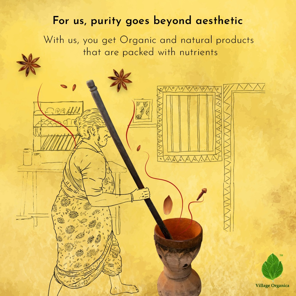 Hand Pounded Spices, Organic Cold Pressed Oil, Raw and Unprocessed Honey, Non BHA Ghee, Ayurvedic Garam Masala, Forest Sourced Herbs and Essential oils, Export Grade Tea & Coffee will ensure that your first purchase will initiate a life-long relationship with Village-Organica. Our Vision is to be among the top 3 organic food brands for our consumers and producers by 2025. “House of Village” an online store for all your organic needs. To tickle your taste bud and ensure a healthy food intake…shop online at our store. !!!!